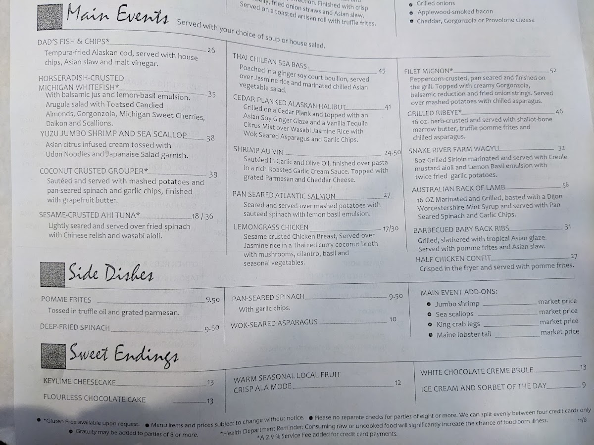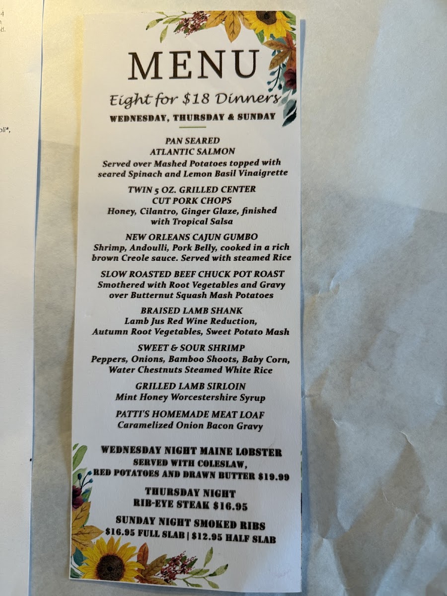 The menu at Timothy's Restaurant offers a refined yet approachable dining experience, blending expertly prepared seafood with thoughtfully crafted bar selections. It’s a place where guests can enjoy everything from comforting favorites like clam chowder to more elevated dishes such as filet mignon and lamb shank, making it well suited for both relaxed dinners and special occasions.
